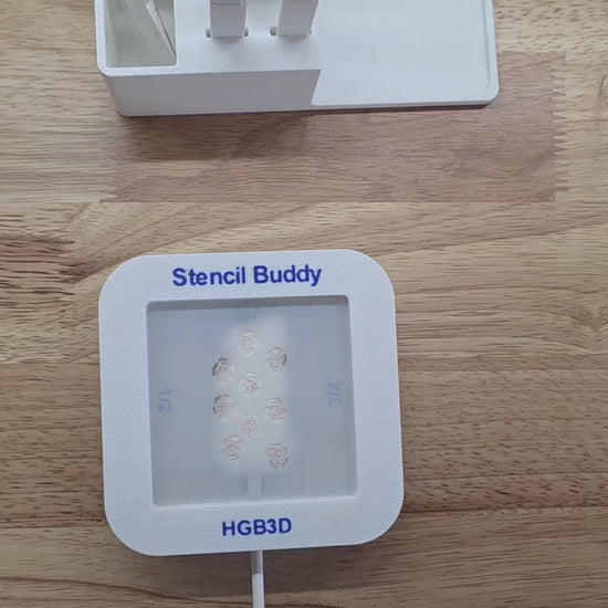Introducing the Cake Pop Stencil Buddy—an innovative tool by HGB3D. This precision holder securely anchors your cake pop stick, ensuring absolute accuracy. Perfect for consistently refined, professional designs. Compatible with 13mm, 16mm, 18mm and 21mm cake pops, it integrates with HGB3D's curated stencil collections.