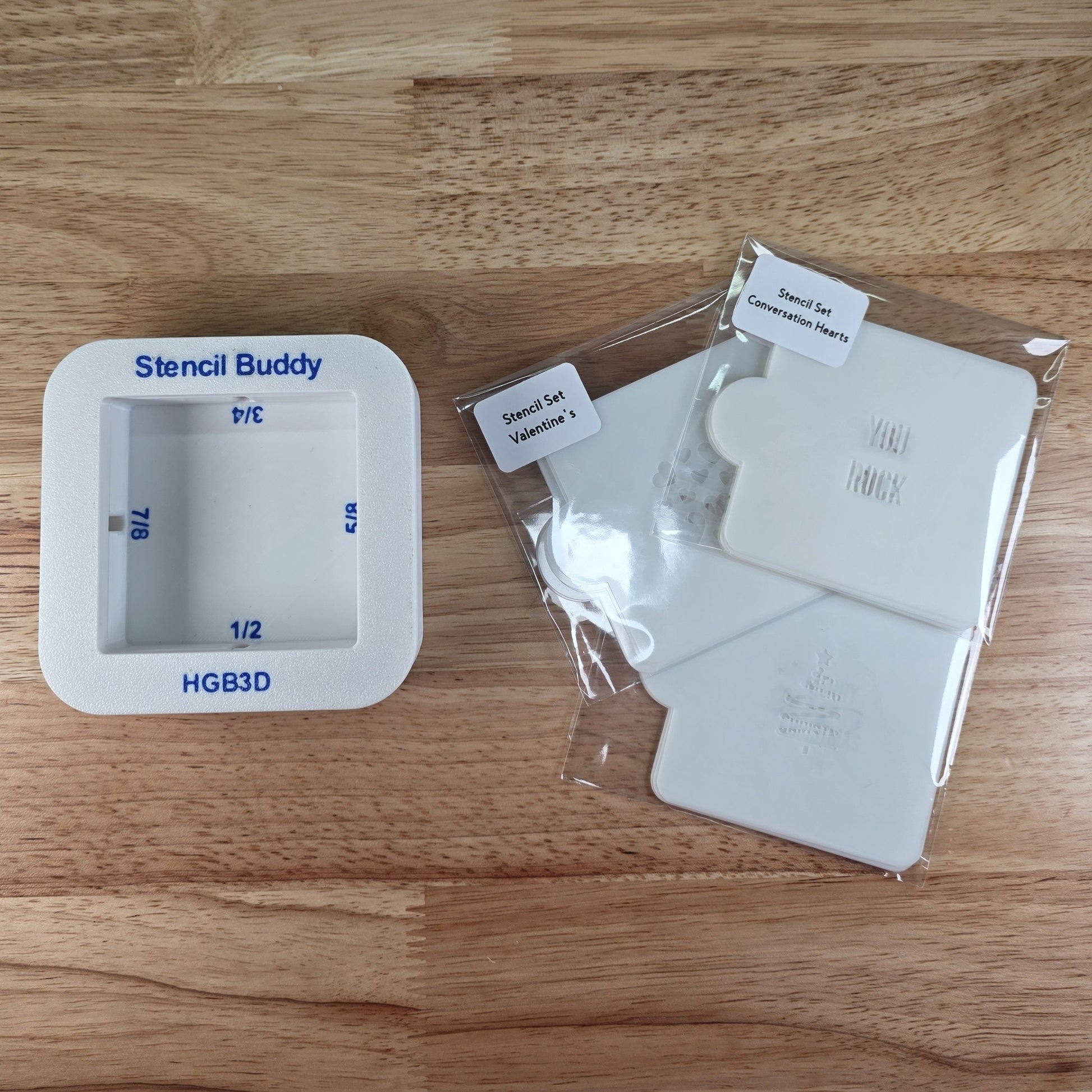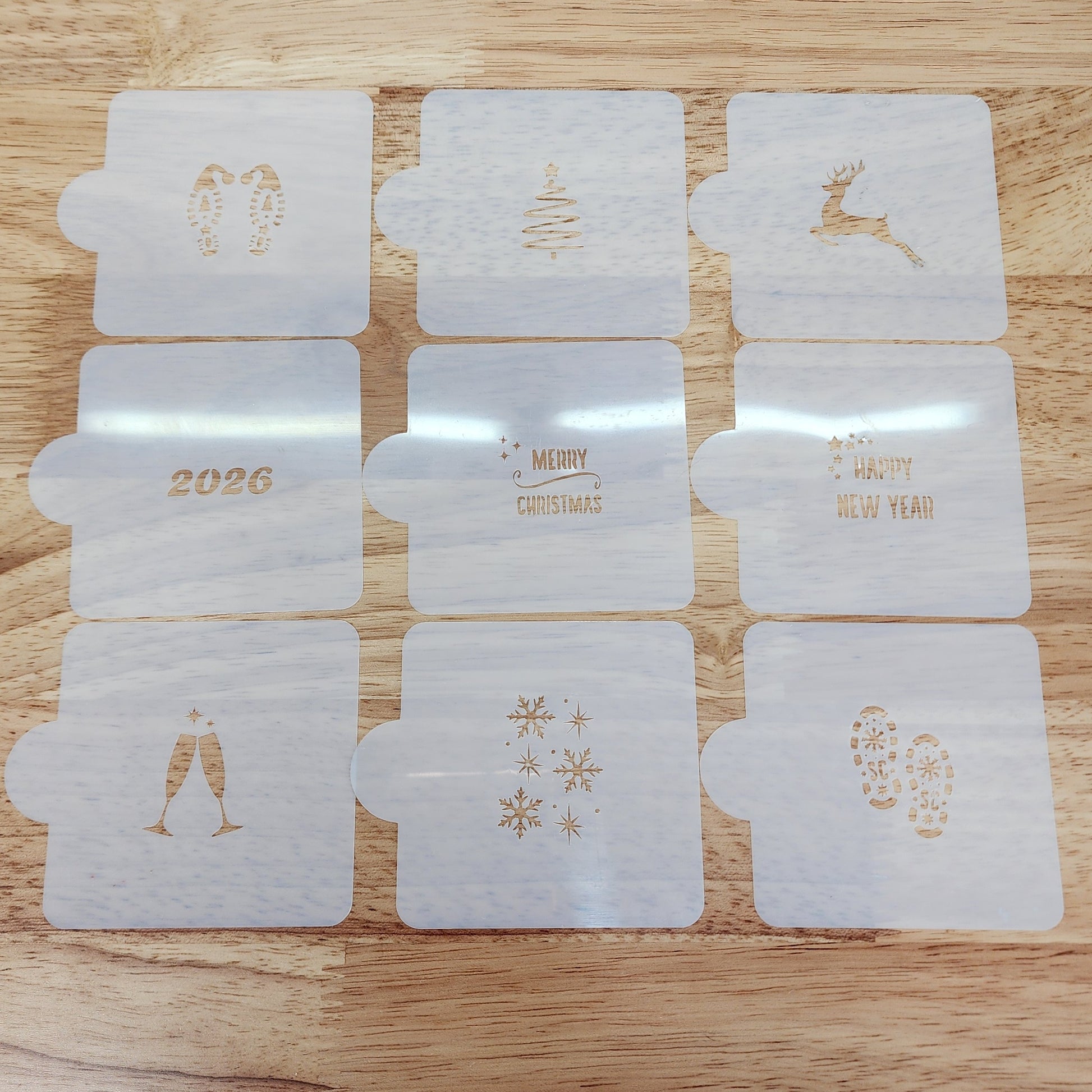 Apply luster dust or royal icing through the stencil openings. Achieve remarkable clarity and minimal effort. The set includes your selected Stencil Buddy size, optional coordinating rolling guides, and a 9-piece holiday stencil collection.