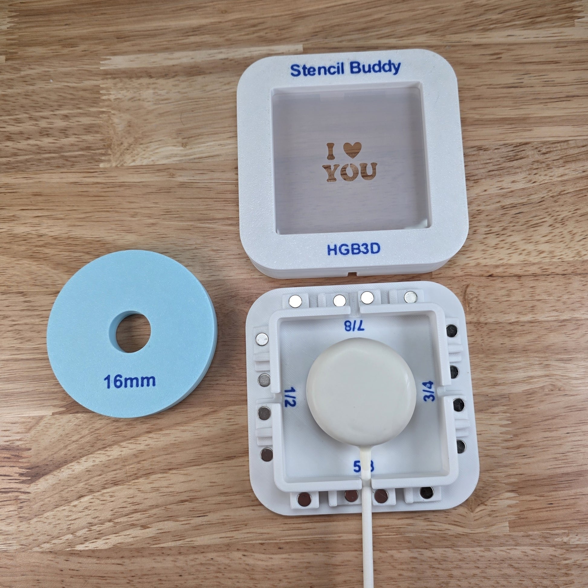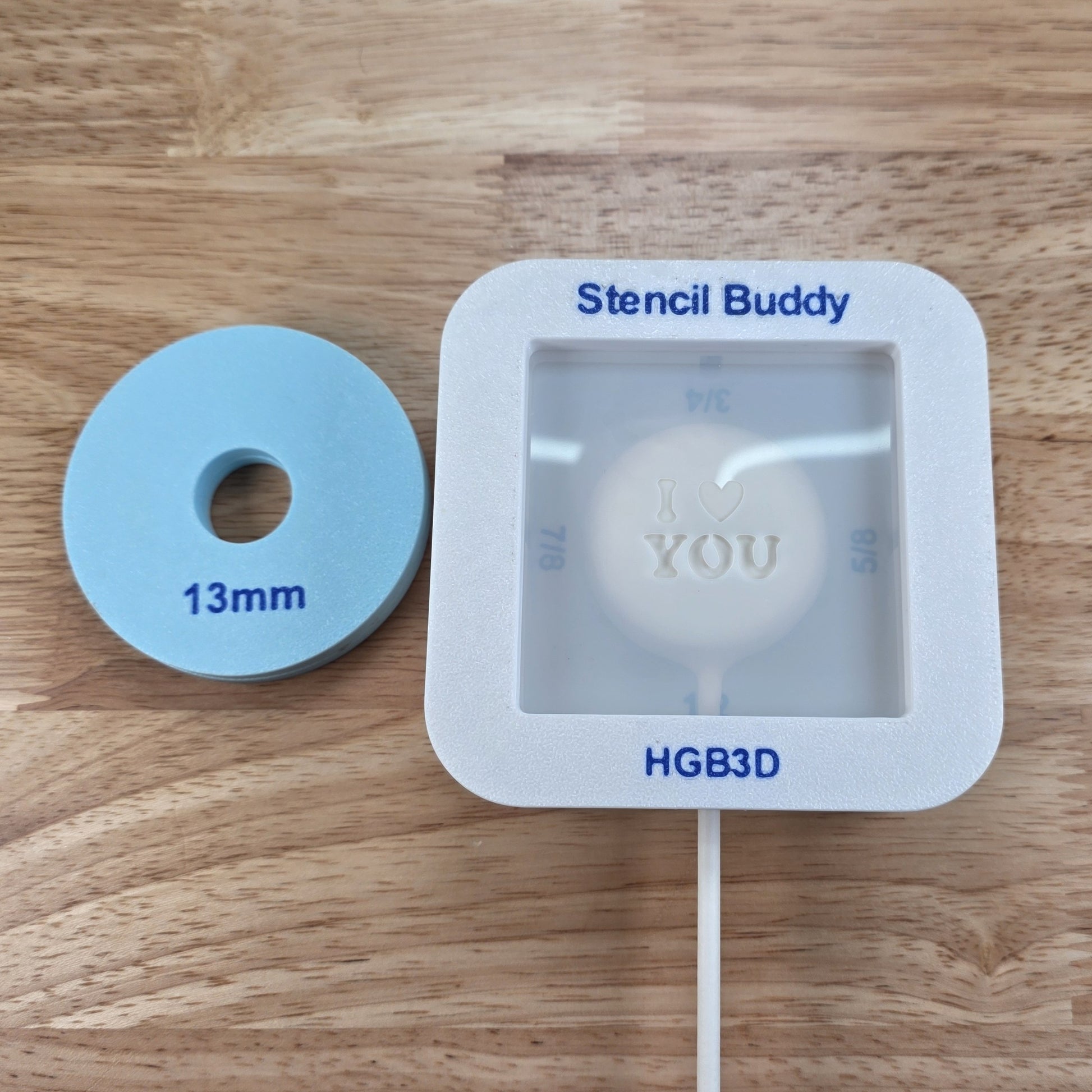 Introducing the Cake Pop Stencil Buddy—an innovative tool by HGB3D. This precision holder securely anchors your cake pop stick, ensuring absolute accuracy. Perfect for consistently refined, professional designs. Compatible with 13mm, 16mm, 18mm and 21mm cake pops, it integrates with HGB3D's curated stencil collections.